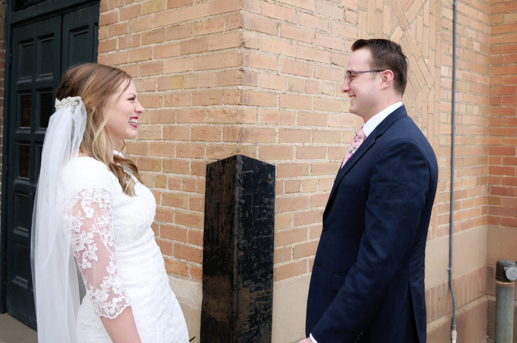 This lovely couple tied the knot the week between Christmas and New Year’s Eve. To save time on their wedding day and to have amazing artwork of themselves to decorate with at the reception, they opted for a pre-wedding session. We started with a “first look” set to capture that moment when they first saw each other all done up in their wedding duds.