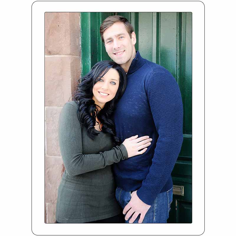 Press printed on our felt paper, one of the finest printing papers made today. It has a luxurious feel and smooth finish, producing a high-quality, timeless option for press products. Rounded corners give your card a unique presentation.